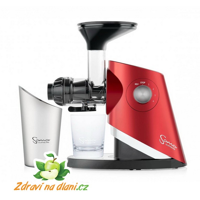 Horizontální odšťavňovač Sana SUPREME 727 v červené barvě