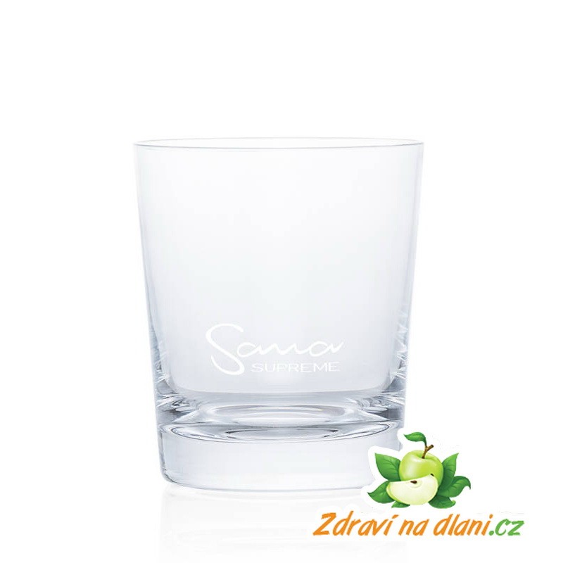 Spojil se s nejstarší českou sklárnou Novosad a syn, která sídlí v Krkonoších, a nechal si od ní zhotovit křišťálovou sklenici na šťávu. Každá sklenice se vyrábí ručně a její objem je 500 ml. Zdobí ji vyleptané logo Sana Supreme. Ze stejné výrobny pochází i nerezový cedník, který pasuje na sklenici a zachytí případnou pěnu a zbytky vlákniny. Zachycenou vlákninu můžete použít při přípravě muffinů a sušenek nebo ji přidat do polévky.
