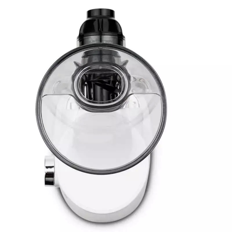 Do plnicího otvoru budete vhazovat většinu surovin, zejména mrkev, kousky jablek a ananasu nebo řapíkatý celer.