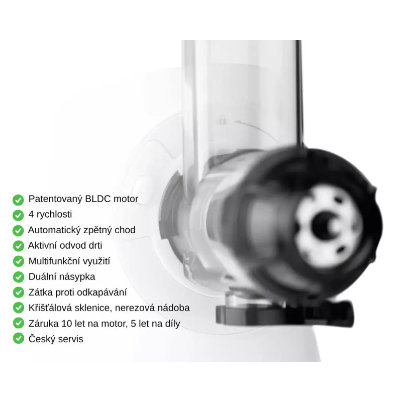 Odšťavňovač je prémiové kvality a vydrží sloužit po dlouhá léta.