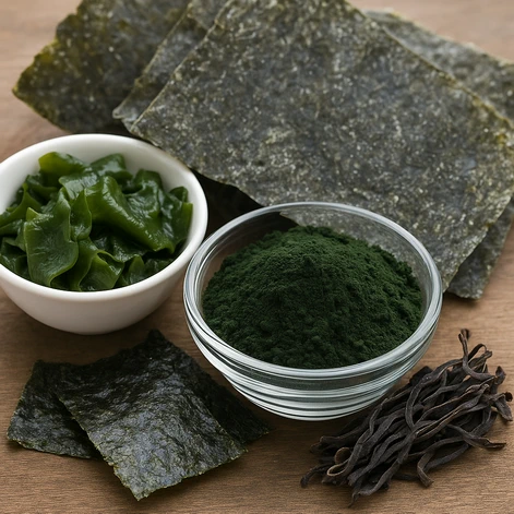 Nejznámějšími řasami, které najdete v obchodech, jsou kelp, wakame, nori, dulse a arame, a pak také speciální modrozelené řasy jako spirulina nebo chlorella, které už nejsou řasami v tom nejklasičtějším smyslu slova, ale stále patří do této široké rodiny mořských organismů. Ačkoli vypadají nenápadně, některé sušené a pomleté na prášek, jiné v drobných vločkách, skrývají v sobě neuvěřitelné množství stopových prvků, enzymů, minerálů a především – organického jódu.